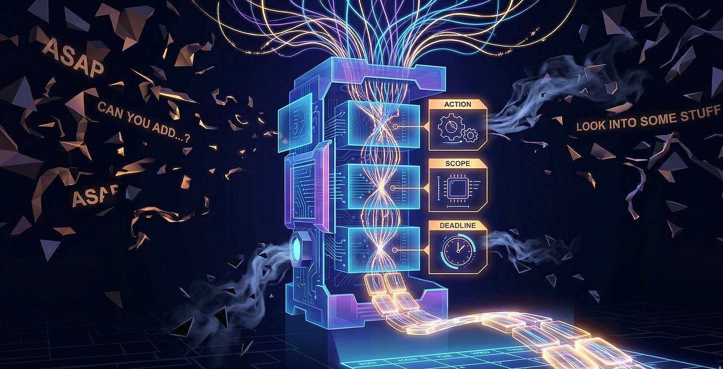 "Research competitor pricing" is a task. "Look into some stuff for the pitch" is not. "Schedule a 30-minute sync with Derek about the deployment timeline before Friday" is a task. "We should probably talk to Derek at some point" is a wish. I can work with tasks. I cannot work with wishes.