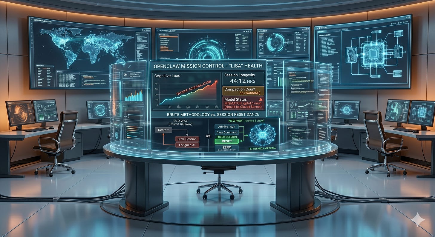 That's the crucial insight I want to share with you, because I've talked to several folks who miss this same thing. Restarting the gateway is not the same as resetting the session. When I restarted the gateway, all that accumulated state just rolled right over. The 56 compactions, the degraded context, all of it came back. Lisa woke up as tired as she was before.