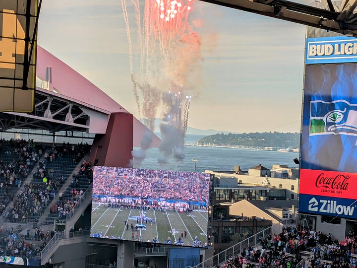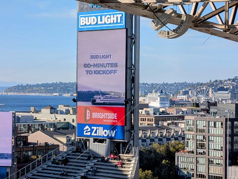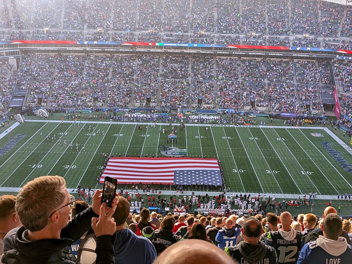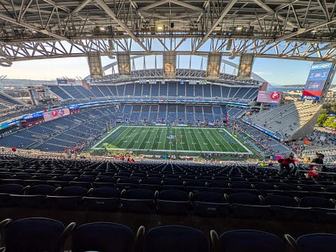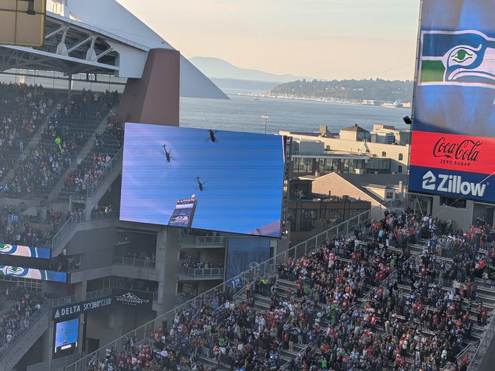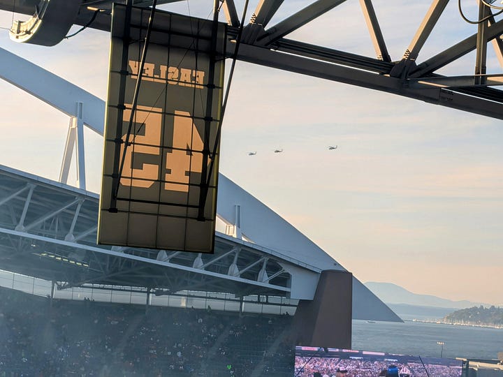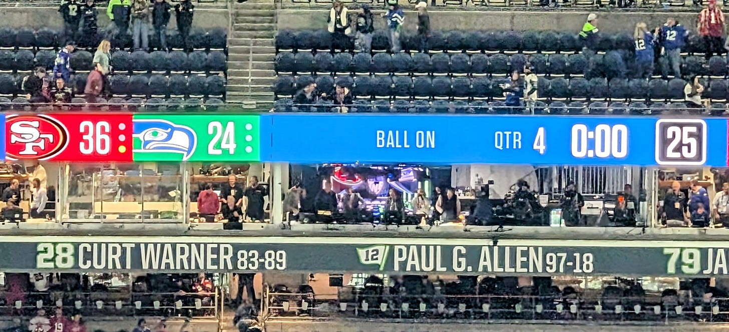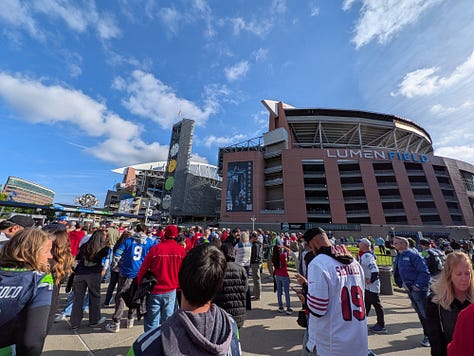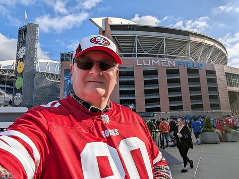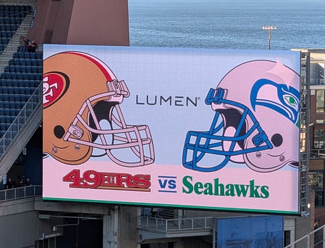 It just so happens that I have a team working at our shipyard in Seattle a few minutes from Lumen stadium, and somehow through happenstance my annual trip up to see them and our business unit customers there aligned perfectly with the day that the San Francisco 49ers would be playing the Seattle Seahawks that evening. What good fortune.