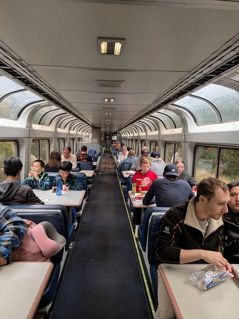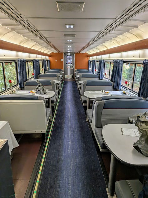 Boarding time arrived and we were allowed to get on Amtrak’s Coast Starlight which travels between Seattle and Los Angeles (though I’d say the name is a misnomer for most of the trip, as it doesn’t even come close to the coast until it gets below San Francisco).