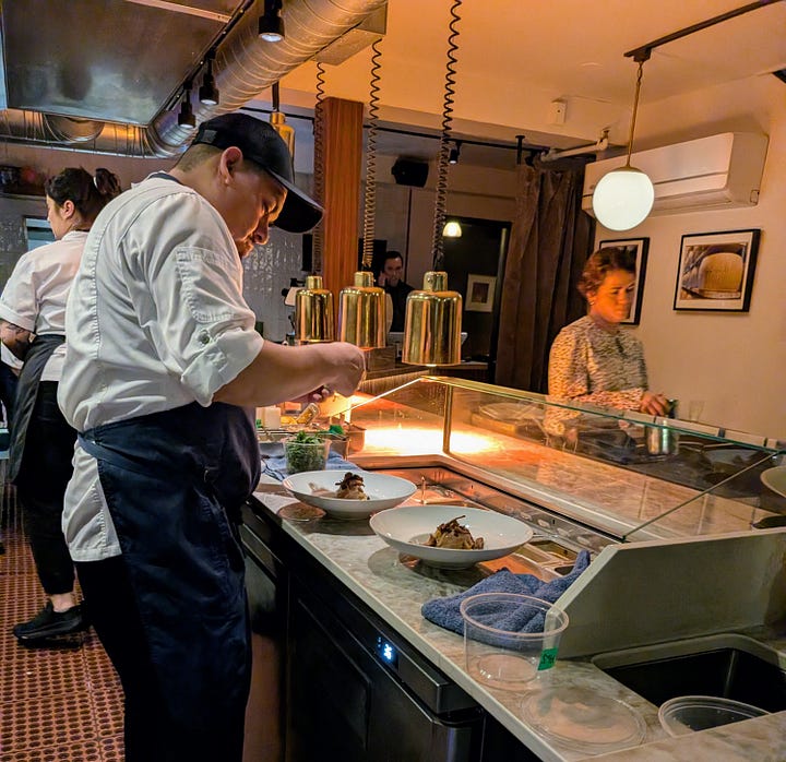 One of the pleasures of sitting at the chef’s counter is seeing (and appreciating) the craft up close. Another is the spontaneity of conversation. I found myself chatting with the staff and several friendly regulars, and the entire experience took on the warm feel of a communal dinner. It elevated the evening beyond just a meal.