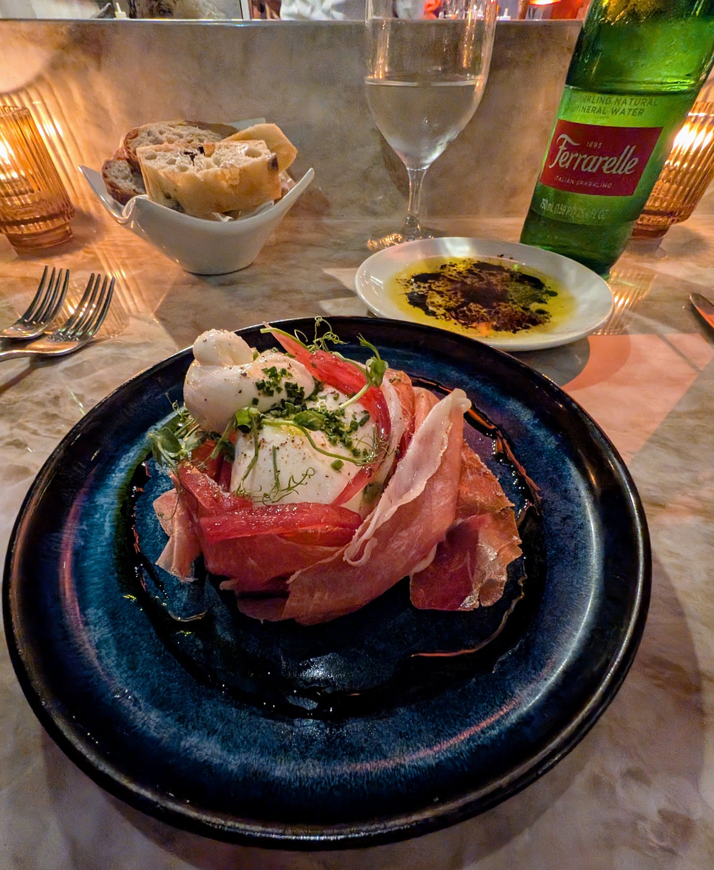 The interplay of flavors was exceptional: salty, silky prosciutto; the stringy, luscious creaminess of the burrata; the tangy sweetness of the balsamic. It was the kind of starter that makes you lean back, take a breath, and think, this is going to be a special meal.