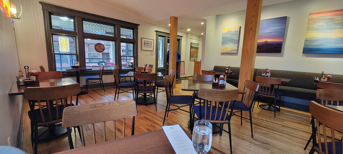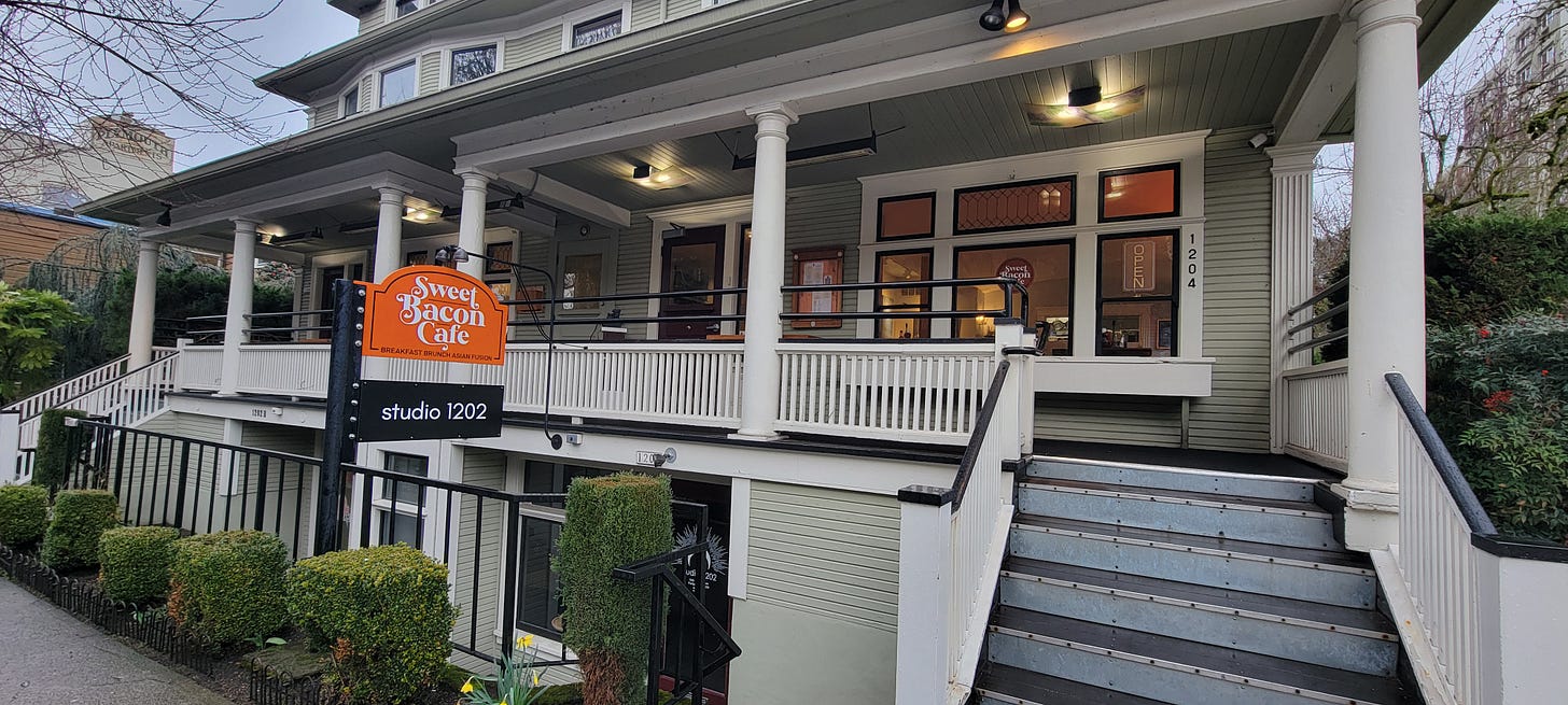 At 0730 I hit the road, intent on being the first one in the door at my first stop. I was bound for Sweet Bacon Cafe, a lovely little restaurant that opened up in the Northwest part of Portland about 3 months ago inside an old Victorian.