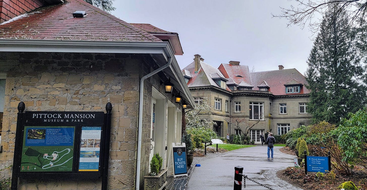 My next stop was only another 6-8 minute drive up the hill to the Pittock Mansion, a home built in 1914 by the local newspaper magnate Henry Pittock.