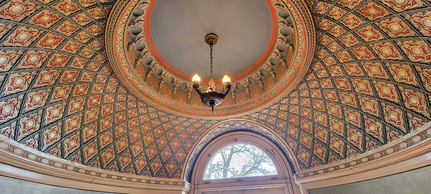 If you’ve ever been to Hearst Castle in San Simeon, CA, (built by another newspaper magnate) this mansion reminds me of a much, much simpler version of that mansion. I decided upon the Behind the Scenes tour rather than the self-guided general tour, as I wondered what was behind the closed and locked doors, and as much as it’s able to, the tour pretty much delivered on that promise.
