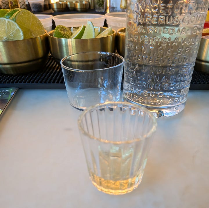 While I was waiting for the food, I saw a bottle of Malort on the shelf and asked the bartender, “You have a half bottle. Do people drink that on a dare, or do you actually make a cocktail from that?” You see, Malort is an extremely bitter liquor that some say is the absolute worst tasting thing you can put in your mouth. The bartender said, “No, I just have it there in case people ask and I give them a shot”. So, having heard about this wormword-based Swedish liquor for years I said, “Sure, I’ll try a shot”.