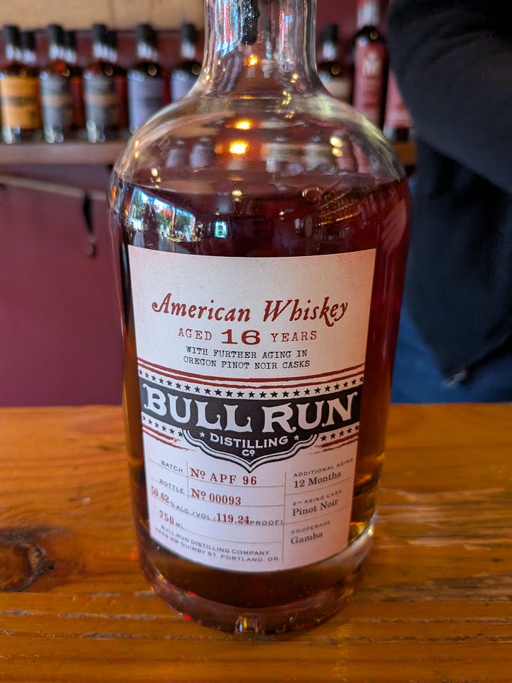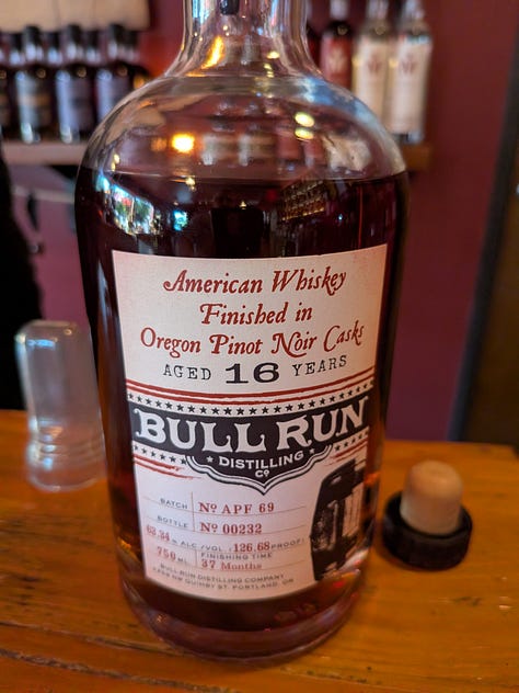 The tasting room is cramped, warm and offers no seating or area for relaxation (I guess I am a bit spoiled, being a member of the outstanding Westward Distillery). I was immediately a little put off, but it had a cozy vibe and the gentlemen behind the counter was friendly enough, so being the only one in there after he offered me his chair I sat down and opted to taste their flight of five premium whiskeys and one of their Vodkas.