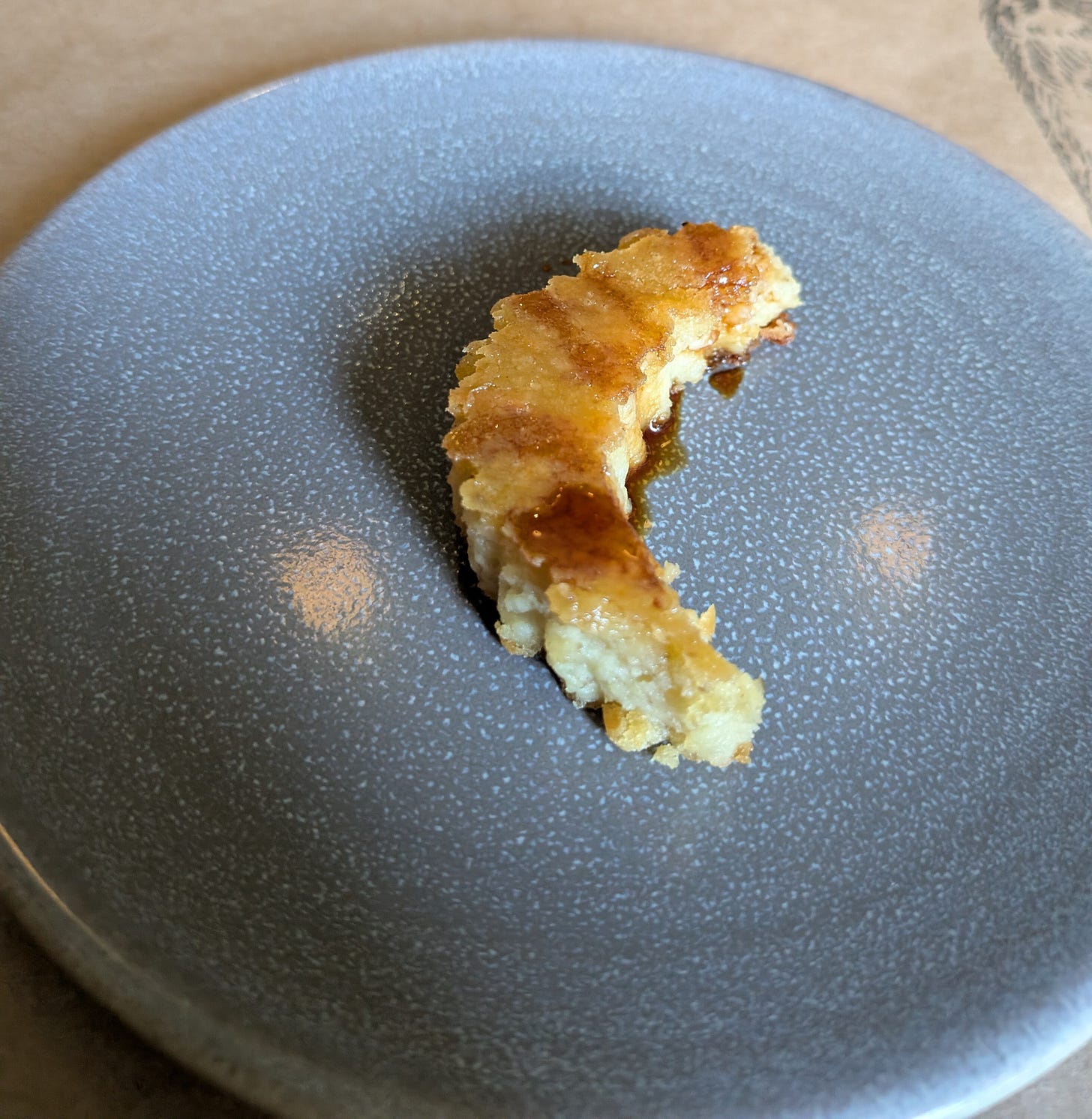 Before that would arrive though the waiter brought me a complementary amuse bouche that he described as a sunchoke and potato gallete. I looked at it and thought, “Huh?” (I mean, look at that picture. It looks like a worm or something. And did someone already take a bite off it?) I tried it and it was mostly tasteless and mushy. When he came back over and asked me what I thought I told him that it needed some crispy pancetta sprinkled on top to give it both texture and some saltiness, as it was very bland and didn’t have a good mouthfeel. He didn’t seem to take the criticism well and I started to suspect where things were about to go for the rest of the meal.