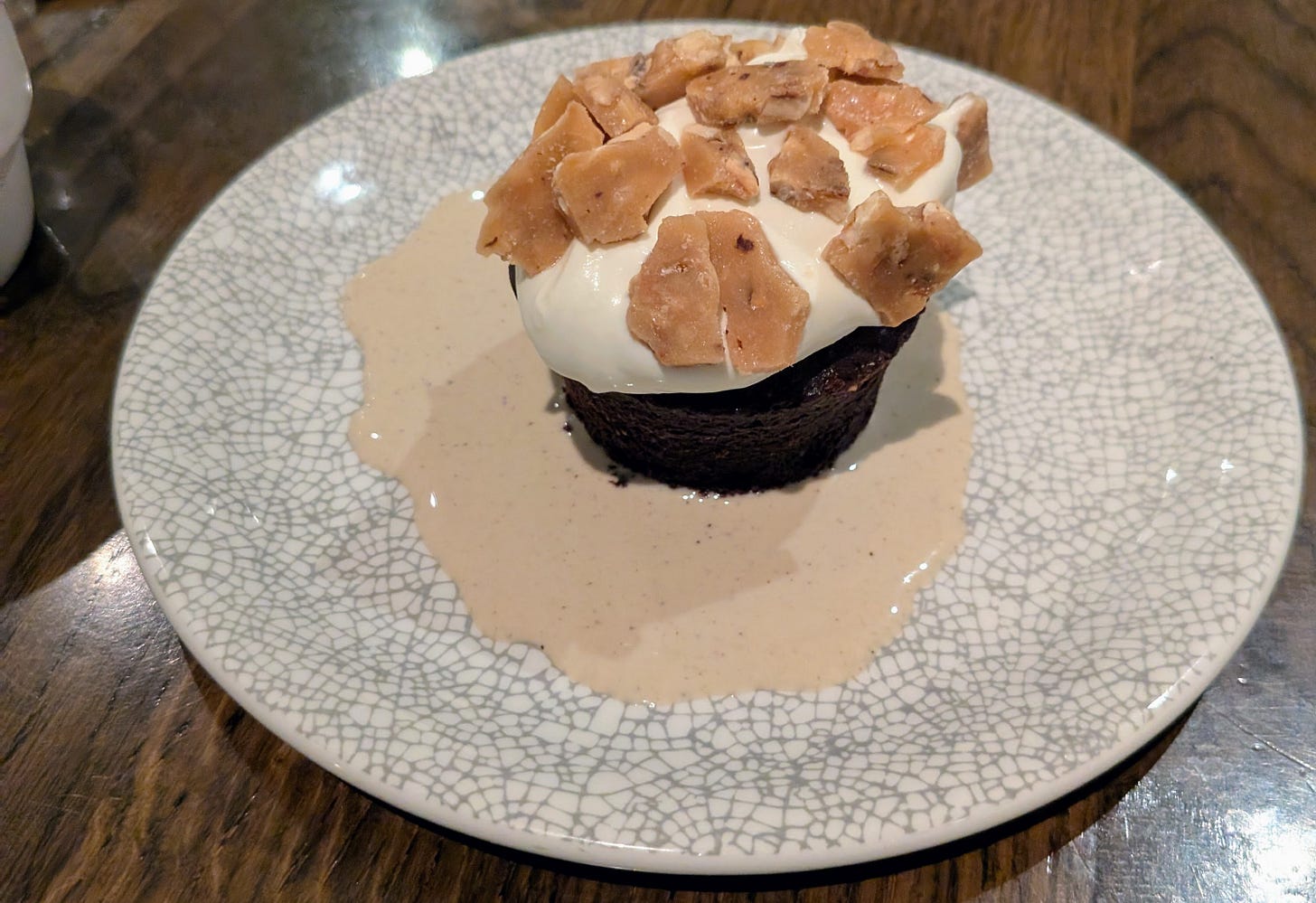 I still wanted dessert though and I had about an hour before curtains at the symphony, so I headed over to the Heathman Hotel to check out their Tavern. The place was packed so I grabbed a seat at the bar and ordered up a double espresso and the Hazelnut Bete Noir, (French for Black Beast) a sinfully delicious chocolate cake confection with coffee cardamom anglaise, whipped mascarpone and candied hazelnuts…. Everything a dessert should be and then some. Perfect size, decadent, sweet, bitter, crunchy soft, yes, yes, yes. That absolutely hit the spot and together with the coffee set me up with the energy to pay attention for the next several hours.