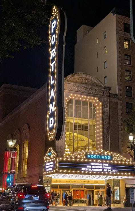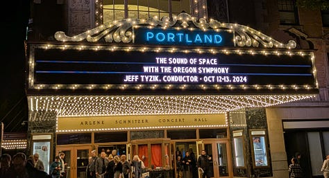 The Oregon Symphony Orchestra was performing their Sound of Space concert for two nights only, in the Arlene Schnitzer Concert Hall, a French Renaissance or Northern-Italianate-style theater built in 1928.