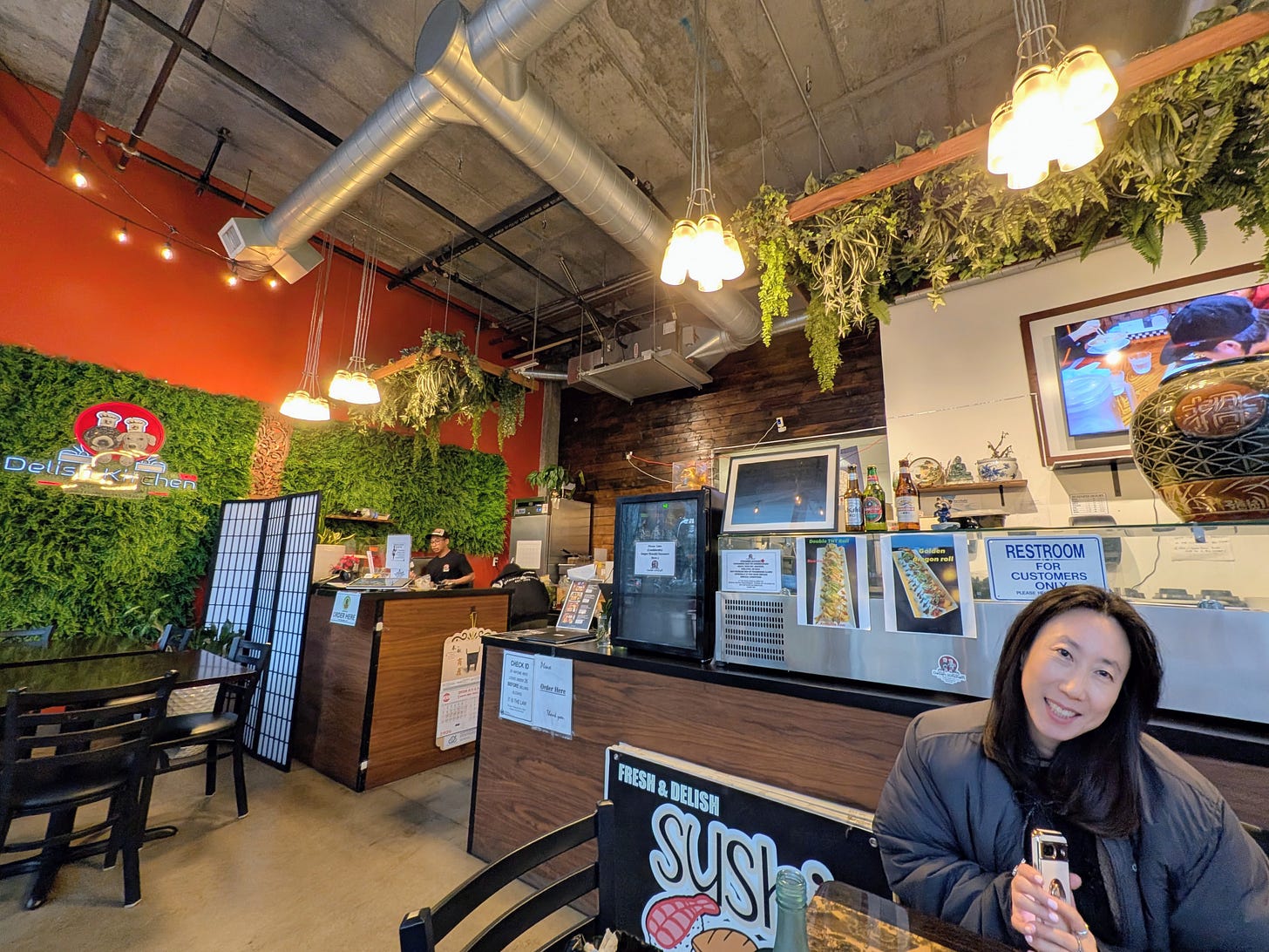 Chef Myint spent about fifteen years working behind sushi bars before opening Delish Kitchen 108. The restaurant is built around online orders. Delivery. Pickup. Catering. The kitchen stays busy, but most of the customers never actually appear to walk through the door.