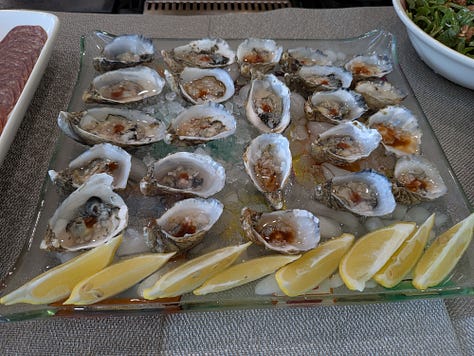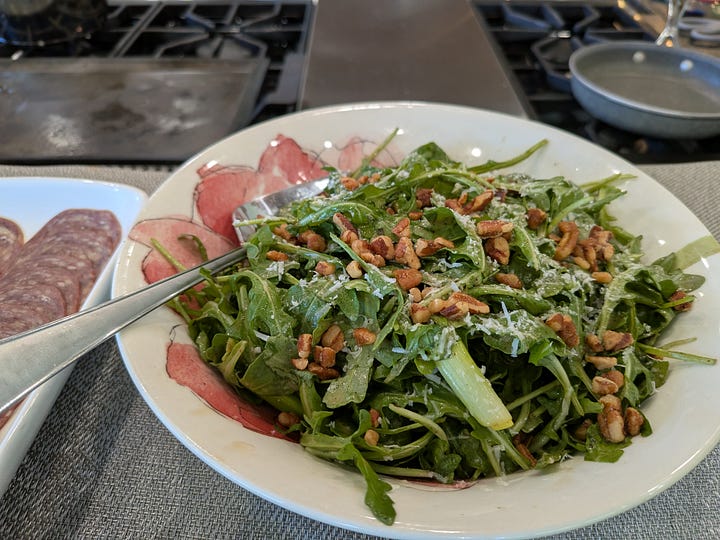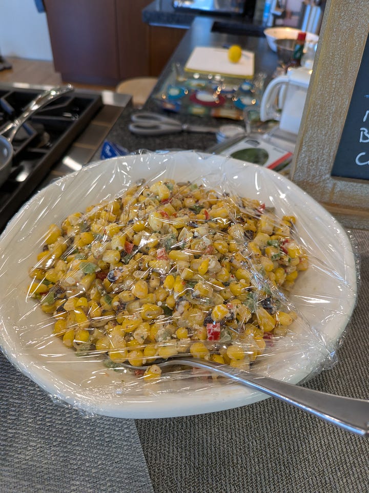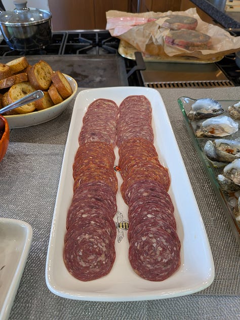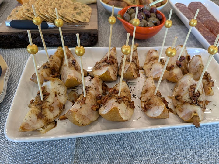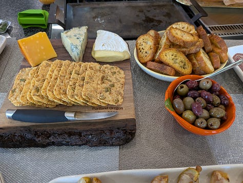 To get things going I set up a nice little charcuterie platter using the serving board that B3 and I made when he visited during his Spring Break earlier this year. I included a wedge of the Rogue River Blue, which was the World Champion #1 cheese at the World Cheese Awards in 2019/2020. It’s fabulous, but I wasn’t sure how the Koreans would take to it. By the end of the day, it was gone…