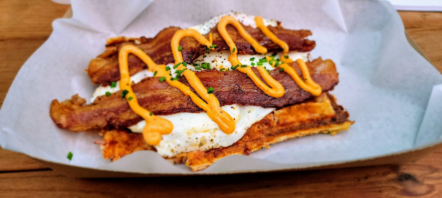 Given that it was early afternoon I decided to go savory brunch vibe and ordered up the Ham and Cheese Waffle, which is filled with hardwood smoked ham and cheese, topped with a soft-fried egg, a smoked aioli and chives. I added an order of bacon to the mix and washed it down with a good ‘ole Stumptown Coffee. The waffle was crisp on the outside and soft in the middle. The baked-in ingredients made it a little denser than the rest of their waffles, but it was still spot on. Afterwards I had to go up and tell the owners that they should be really proud of the product they are putting out, because it was top notch.