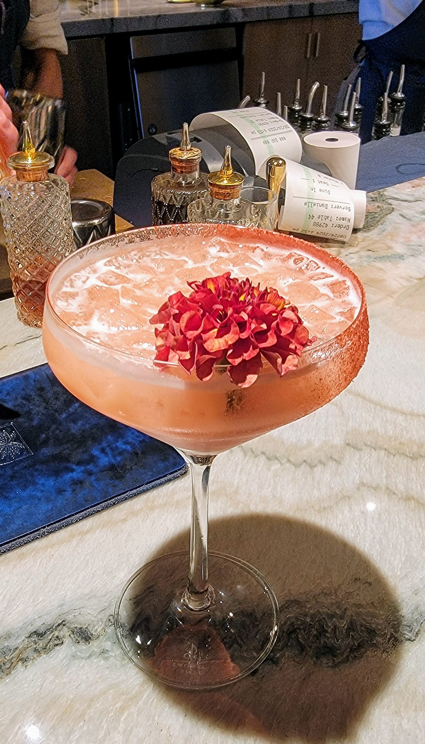 I started with the Bel Plaj, a wonderful cocktail designed to invoke the feeling of relaxing on a Caribbean beach, as it’s made with white rum, coconut liquor, strawberry, pineapple and coconut milk.