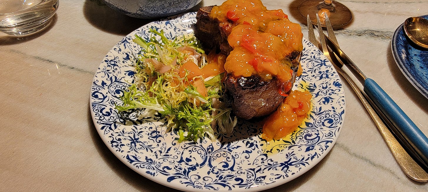 Even though I was in the very front row when the show ended the lights went down and I used the distraction to high tail it out of there and ended up getting to the tent exit quickly and out of the very full parking lot (the next showing started about an hour after the first show and all of the attendees were already lined up outside) within five minutes and onto Hwy 5 headed for the Southeast part of town to partake at Portland’s newest James Beard award winning restaurant Kann, also voted by the New York Times as the Best New Restaurant in America in 2023.