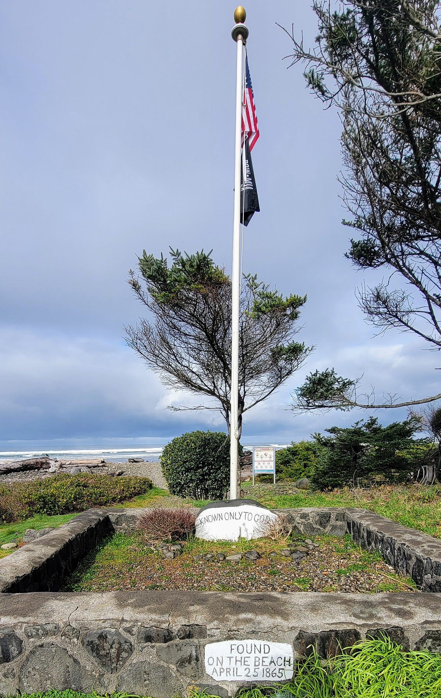 While the sky was overcast all day the weather was in the upper 40s to low 50s throughout and after a bit of a stumbling traipse along the rock-strewn shore I decided to make my way back towards the blacktop street to hopefully get to the site I had come here to see without twisting an ankle. After a few moments of wandering along a stamped down path I came across a monument called The Sailor’s Grave.