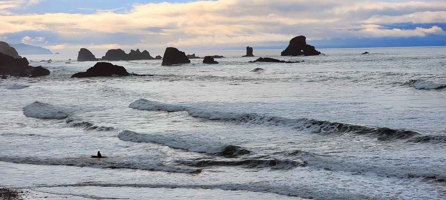 Back in the car again and another 20 minutes down hwy 101 I turned off the main road onto a winding two lane blacktop road lined by ferns and moss-covered conifers reminiscent of some Jurassic scene. Following to the very end it took me out to Indian Beach.
