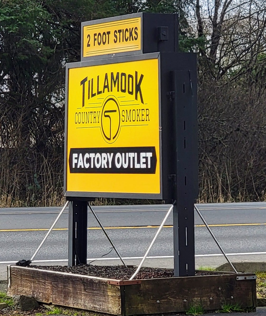Ok, maybe I could have eaten it because about 10 minutes down the road I saw signs for the Tillamook Country Smoker Factory Outlet and their 2 foot long jerkey sticks.