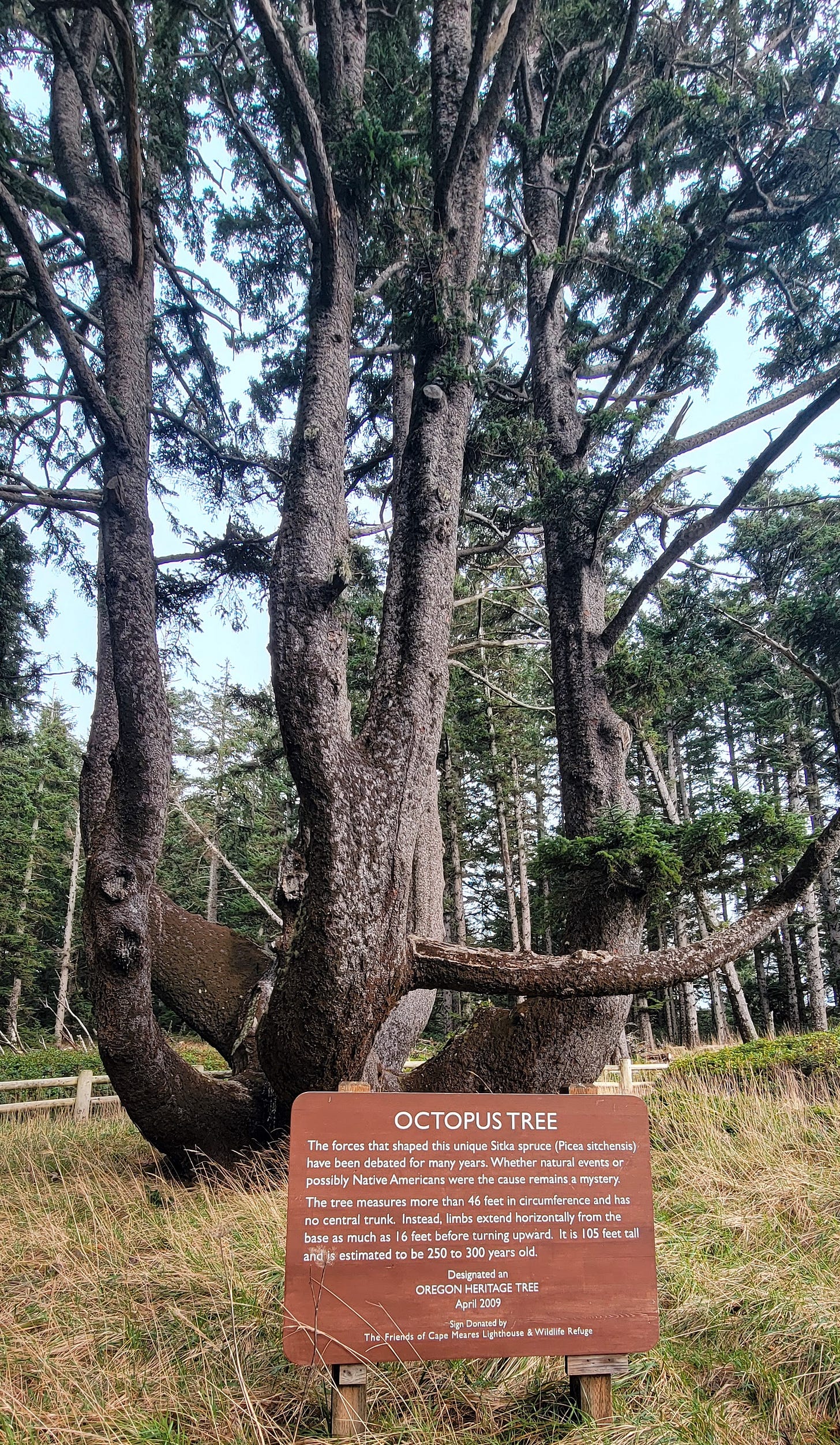 The walk back up was bearable and by continuing up through the parking lot and about another eighth of a mile further I arrived at the Octopus Tree, a rather weirdly formed Sitka Spruce that is 250-300 years old with 8 trunks but no central trunk.