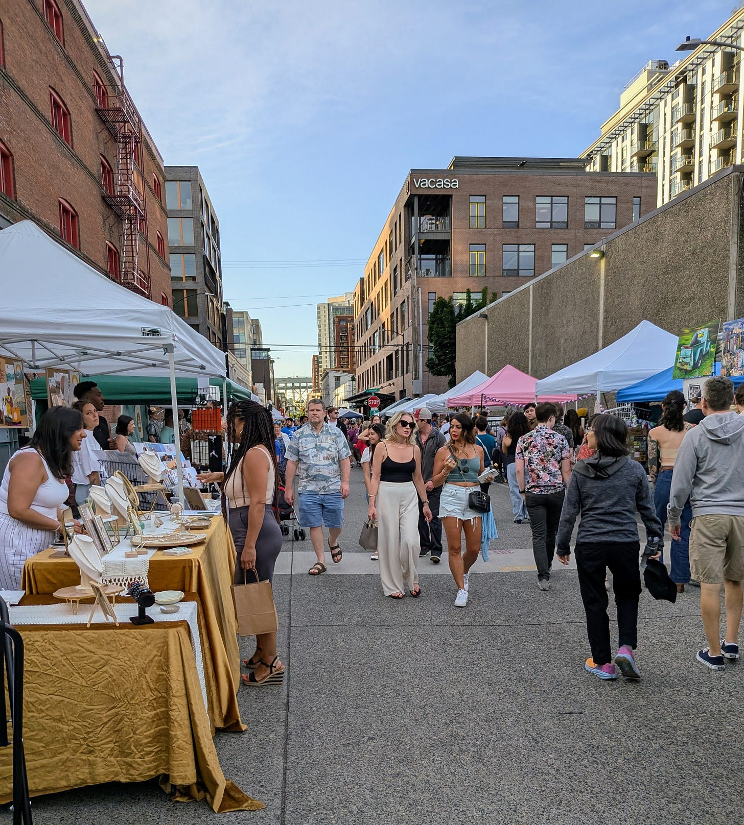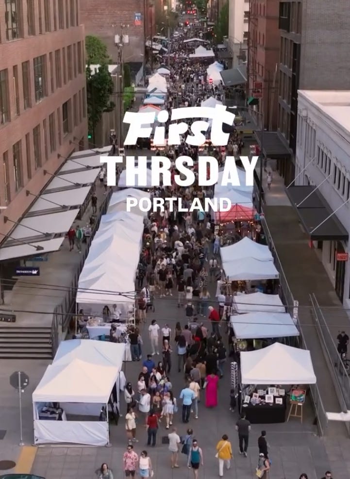 Portland is known for its vibrant art scene, and like many cities around the world, it celebrates local art and culture on the First Thursday of each month. From late spring through early fall, the Pearl District comes alive with the Urban Art Network's street gallery, an event that's been a Portland tradition since 2000. Last month was my first time experiencing it, and it was a great night out with friends.