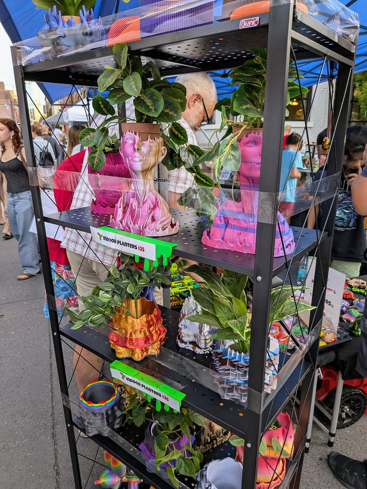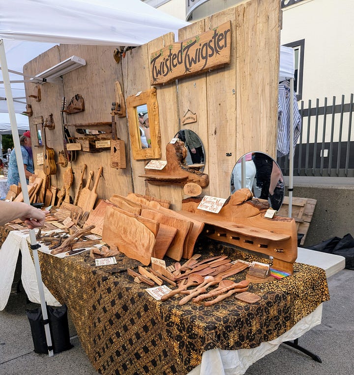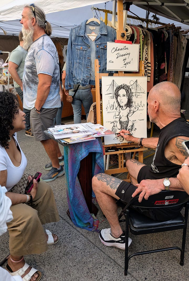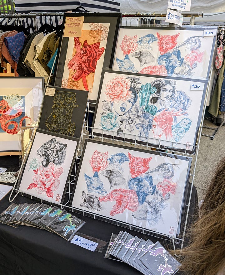 After a bit of a struggle to find parking—which is to be expected in the Pearl District, and especially on First Thursday—I finally made it to the main event of the evening. NW 13th Avenue was packed with scores of artists in small booths, showing off their work. The energy was electric, with a young, hip vibe and the street was full of people from end to end.