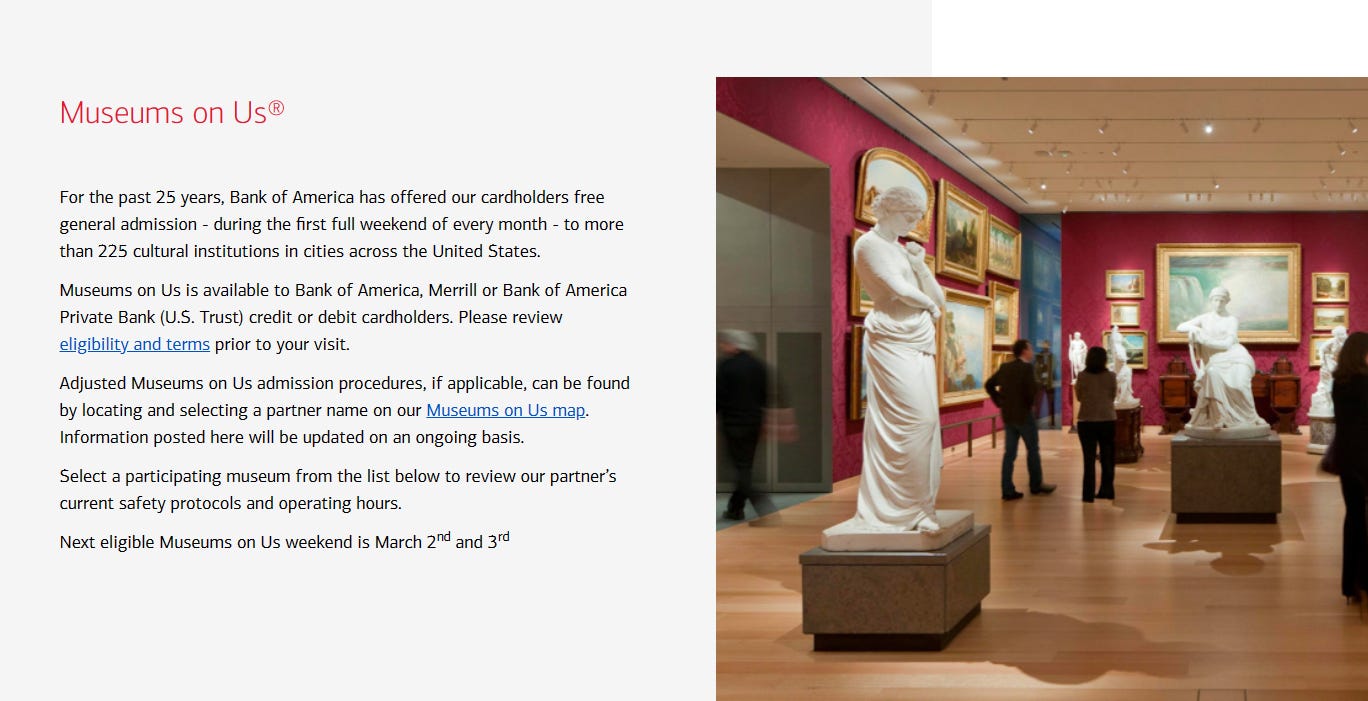 If you have an account or credit card with Bank America there are museums across the country that you can get into for free on these dates: