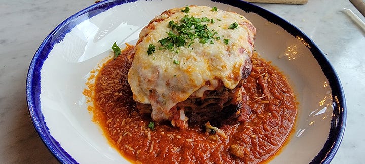 Even though I told the waitress that this lasagna was definitely not in my top 5 I thought the service was very attentive, the restaurant was clean and quiet and nicely located to where I needed to go. So, even though I gave this experience 3 1/2 stars out of 5, would I go back? Yes, I would. I would give it another shot for sure in the future.