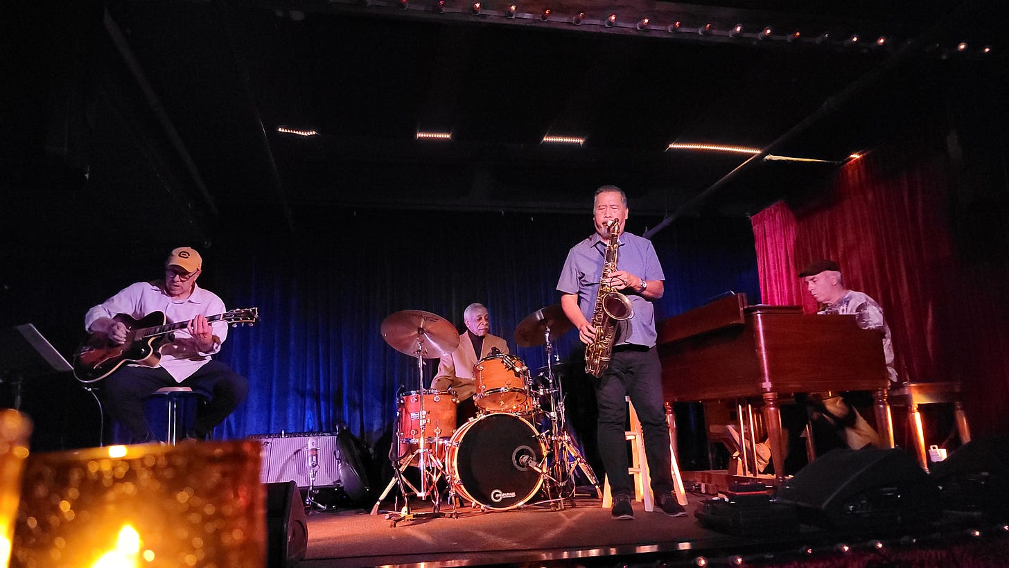 It was obvious that everyone was having a great time, interacting with the band and hooting, howling and whistlin’ them on. They played a number of smooth jazz covers as well as some soulful blues originals, covering a wide gamut over about 2 hours.
