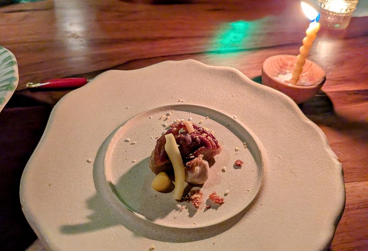 For my birthday I decided to indulge in a special dinner for Kay I at the esteemed Longbaan, one of the two 2024 James Beard Best Restaurant Northwest award-winning restaurants here in Portland (having already eaten at the other, Kann). I had been looking forward to trying Longbaan for over a year, drawn by its reputation and the promise of exceptional Thai cuisine.