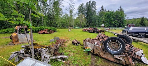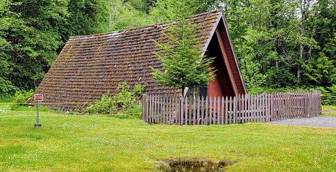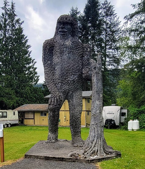 At milepost 19 I stopped in at the North Fork Survivor’s roadside attraction. Outside there is an A-Frame house that shows just how far and how deep the mud flow from the Mt St Helens volcanic eruption made it, along with cars from those that didn’t survive and a 28-ft tall Bigfoot.