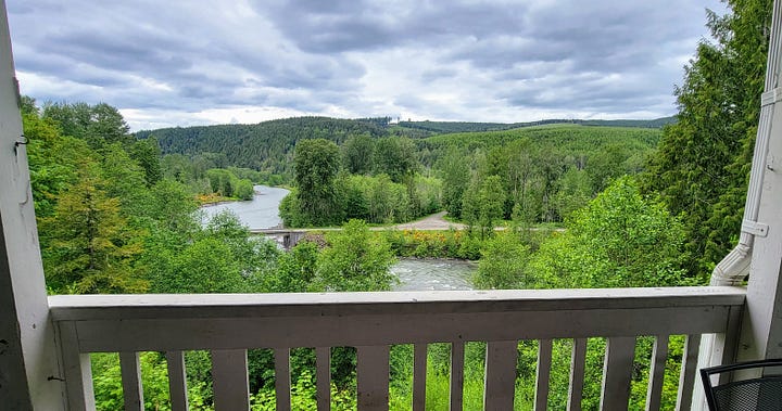 Half way back down the mountain I saw a lunch spot that I had glimpsed on the way up and decided to stop in for a visit. The Fire Mountain Grill is a great spot to get a bite to eat, play some horseshoes and watch the river. I highly recommend getting a seat outside on the back patio overlooking the North Fork of the Toutle River.