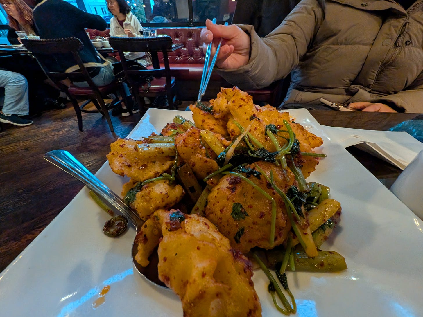 Finally, Kay wanted to try the 飄香竹塔魚 Deep Fried Fish Fillet Szechuan Style, so we went that route. It looked good on the plate, but upon trying a bite the breading wasn’t that crunchy and it was super salty. Neither of us even finished our first bite and when we asked for the check and they asked if I wanted a to go box I told them no.