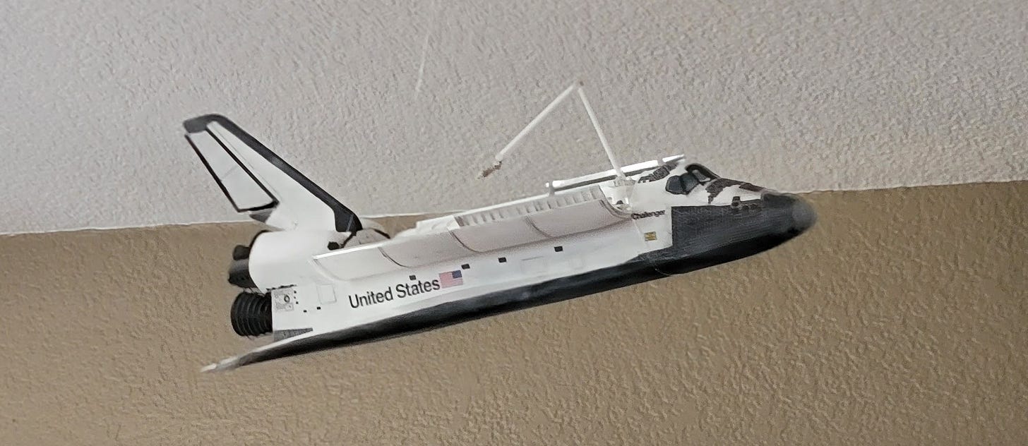 It turned out as one might expect for a modern model kit using the same techniques of my childhood. It was a bit more refined, but generally messy. I hung it up on the ceiling of my office and it stayed there by itself for well over a year.