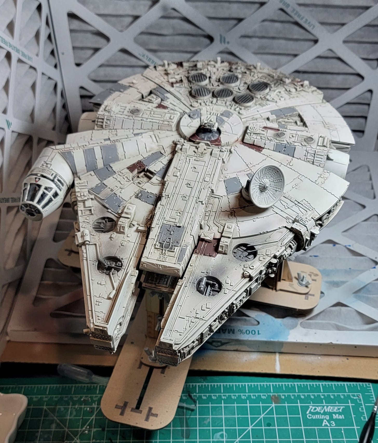 For my next model a couple months had passed and we were now into June 2023 and I wanted to start getting into weathering. I’ve never been one to appreciate a perfect museum floor quality model and instead much prefer to make my models look like they have been ridden hard and put away wet, mirroring the conditions they might experience in war or general usage whether terrestrially or in space. I switched things up and went fictional this time with the Millenium Falcon from the 1977 movie Star Wars.