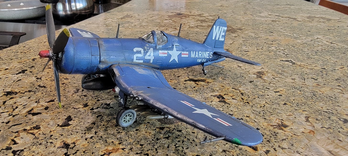 I had signed up to take some classes with Harvard Business School online and they weren’t progressing as quickly as I wanted them to because I was spending so much time building models in my spare time so I decided that I needed a pause to focus on schoolwork. By the end of February I found a spot where I could take a break from studying and jumped back into model building right where I had left off 40 years ago or so, with the F4U Corsair. This 1/72 build was smaller than the 1/48 scale I had built as a kid, but I’m certain this one turned out a whole lot better.
