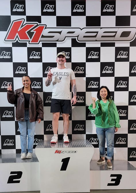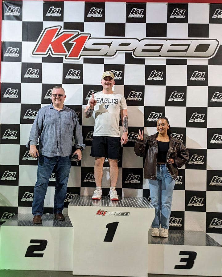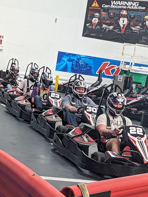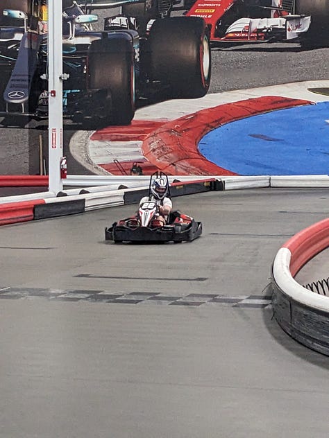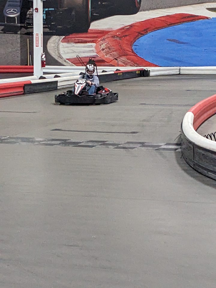 We noticed on the way in that there was a K1 Speed next door, so we decided to go off-schedule and put in a few laps. These things get up to 45 miles per hour and with just us and two other racers on the track we got an opportunity to really feel the need for speed.
