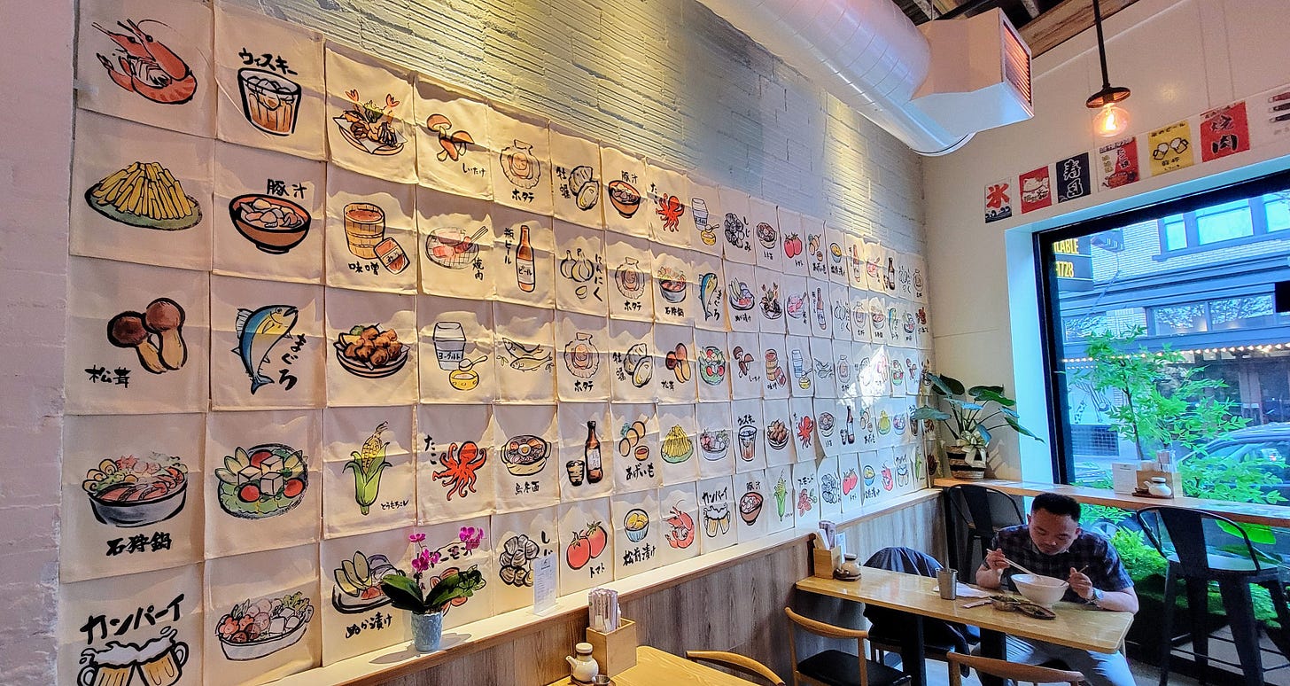 I’ll definitely head back when I have more time, but we were all hungry and getting tired so we made our way the two blocks over to Ikimono Ramen a little 5-6 table restaurant tucked into what appears to be a very old building with fresh updates.