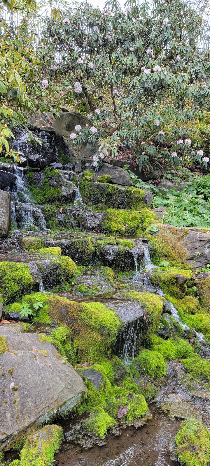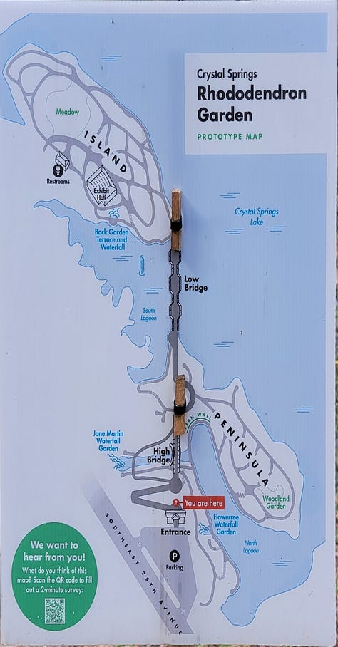 Feeling very satisfied (aside from the heaviness of the potatoes, the waffles were filling, but I wasn’t stuffed or anything, just happy) I headed to my next stop, the Crystal Springs Rhododendron Garden. I arrived a few minutes before opening so I lined out the rest of my morning, then entered the garden promptly at 10am. Entrance fee is $5, but (spoiler alert) I loved the place so much that upon exit I bought an annual pass for two for $40 and they credited back the $5 I had already spent. Totally worth it as I will be back many times.