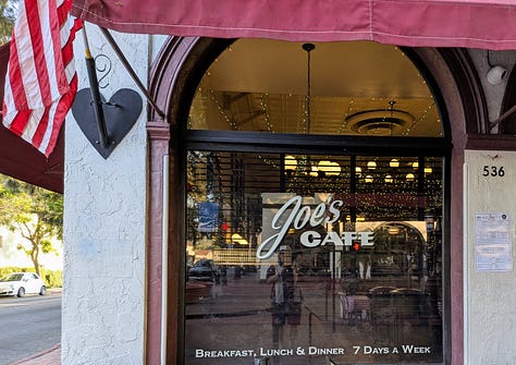 After settling into my hotel and getting a good night’s rest, I woke up to a golden Saturday morning with a few hours to explore before the wedding festivities. A quick scan of the local welcome guide (and a helpful nudge from the front desk clerk) pointed me toward Joe’s Café, a downtown landmark established in 1928 and housed in a building dating back to 1886.