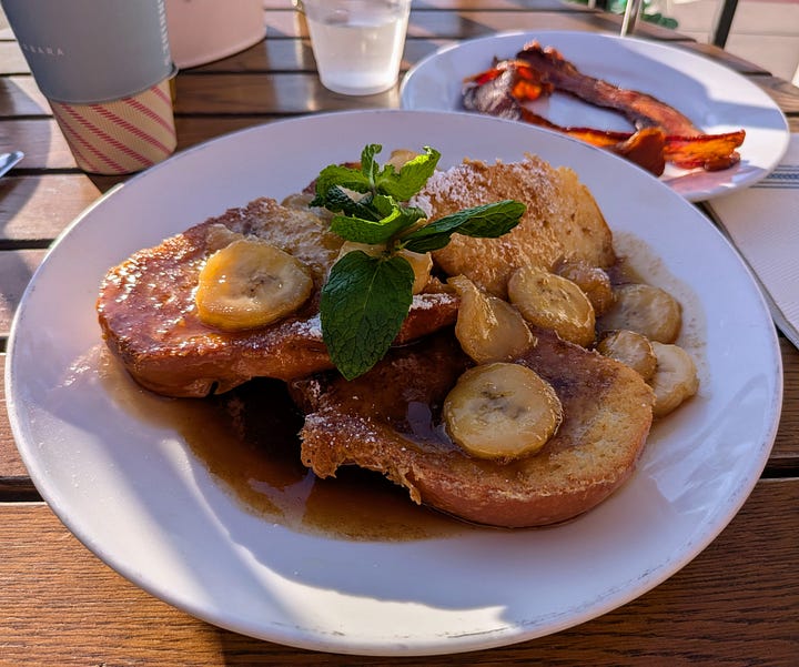 The wedding in Santa Maria was joyful, a true family reunion with four generations represented. The next morning, determined to redeem my breakfast experience, I made my way to Jeannine’s Restaurant and Bakery. This lively café delivered in every way: flaky pastries, friendly service, and a spectacular Bananas Foster French Toast that I’m still thinking about. Combined with a sun-drenched view of the beach, it was easily one of the culinary highlights of the trip.