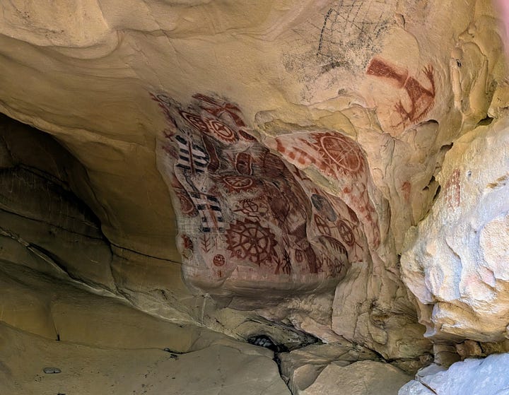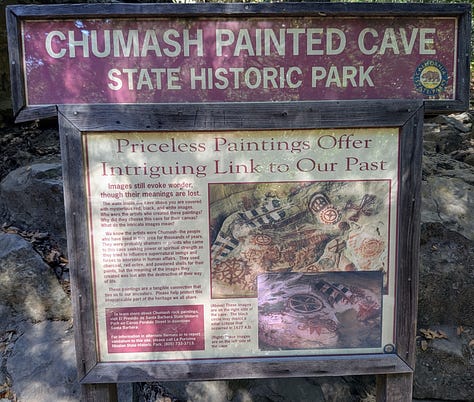 Fueled by sugar and caffeine, and the kind of morning optimism only travel brings, I drove up into the hills to visit Chumash Painted Cave State Historic Park. The narrow, winding road leads to a small rock enclosure adorned with centuries-old pictographs, haunting, intricate, and remarkably well-preserved. Photos don’t do it justice, but the official park site offers an excellent narrated history and even a 3D virtual view.