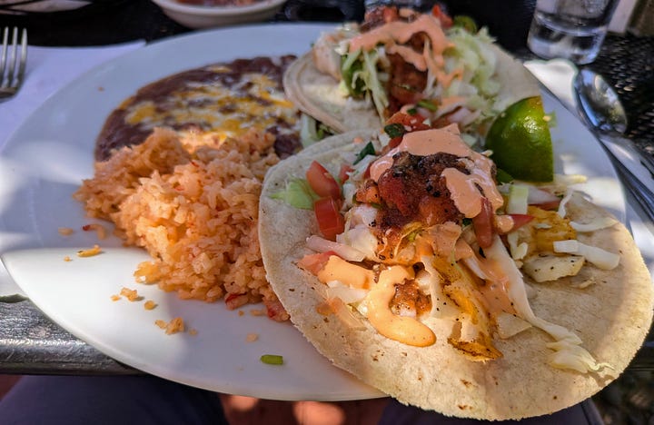 By then, my stomach reminded me that it was past lunchtime. I drove the few blocks over to La Playa Azul Café, a relaxed, family-owned spot tucked into a Spanish-style courtyard with bright blue umbrellas and ocean breezes drifting through.