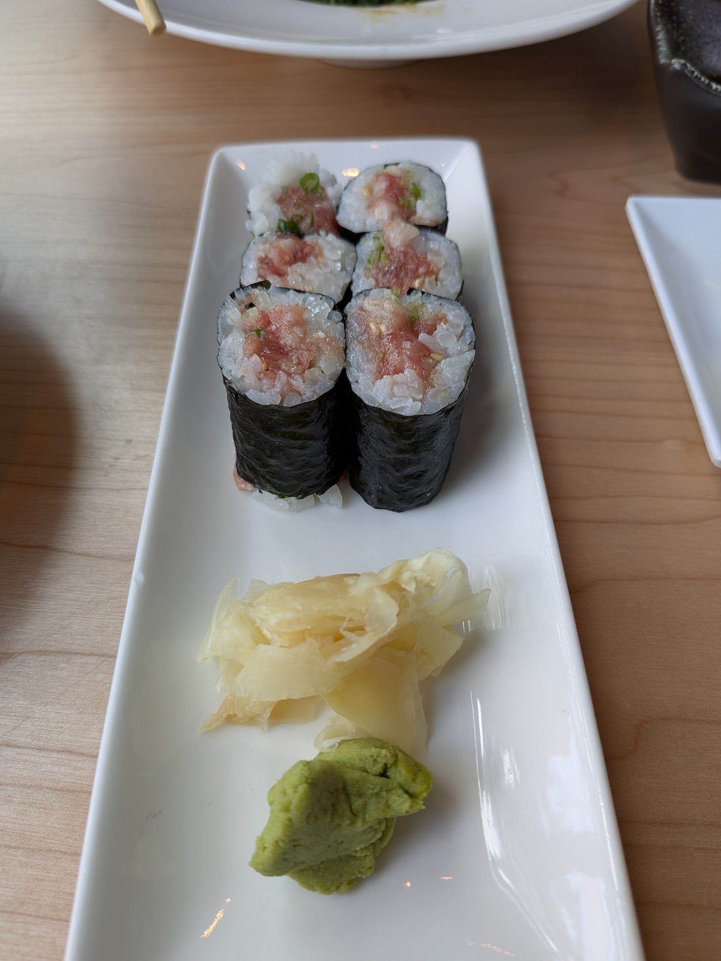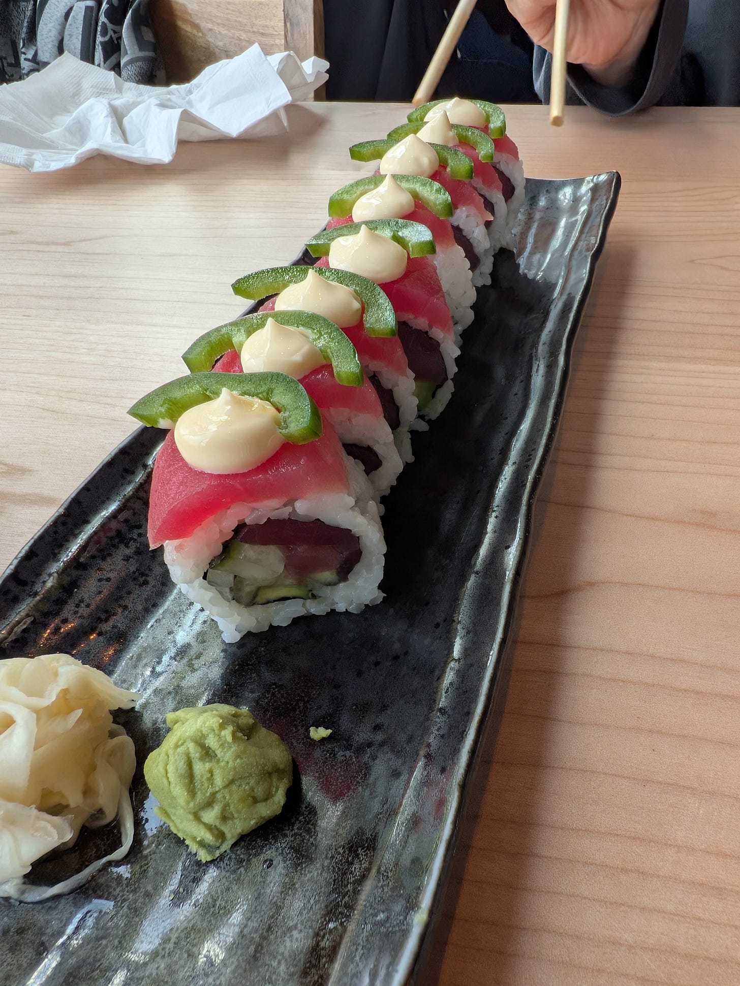 For the final dish (we were going light on lunch because we knew we had a dinner date that night with friends) we shared a very fresh and flavorful ahi roll with a little punch from the crispy Jalepenos.